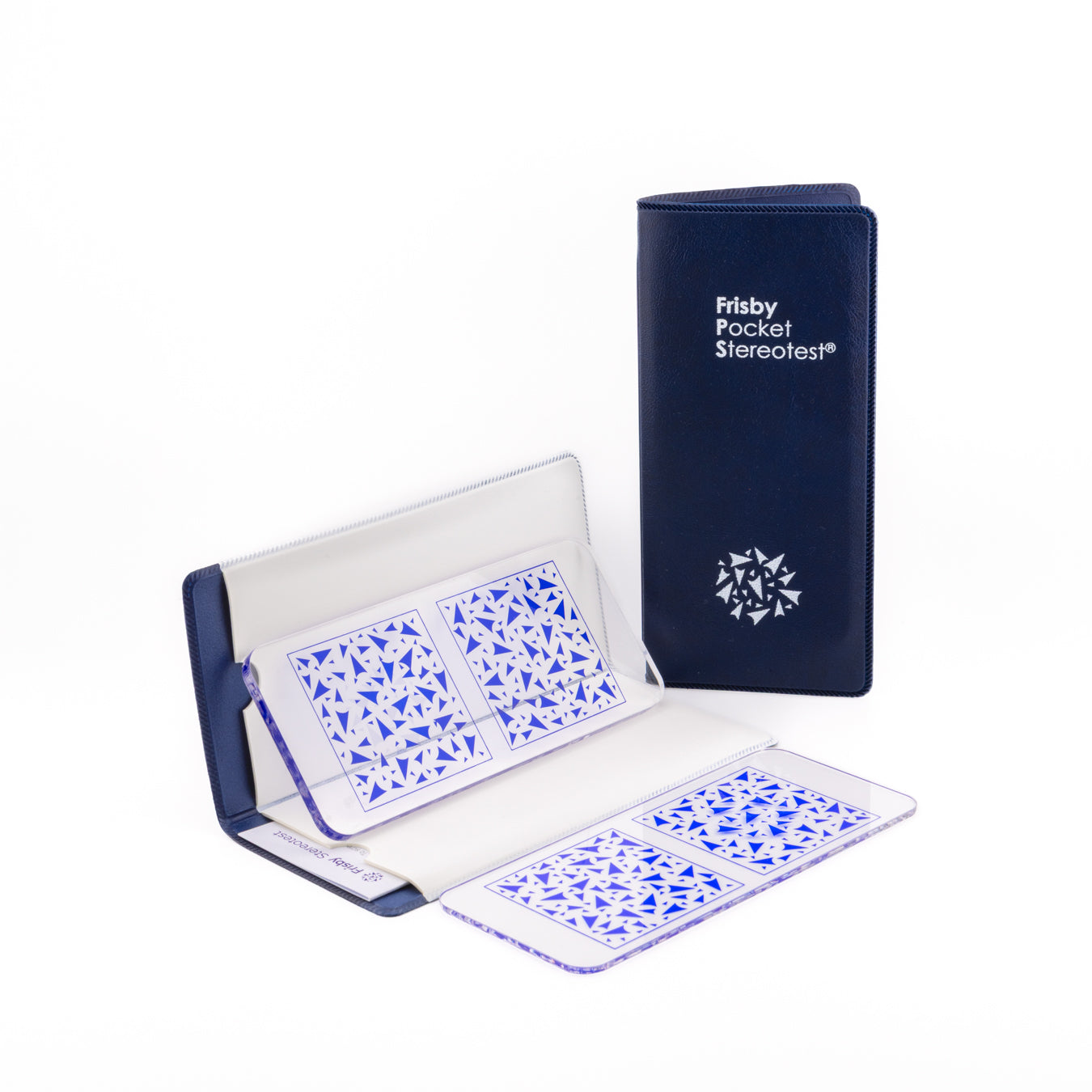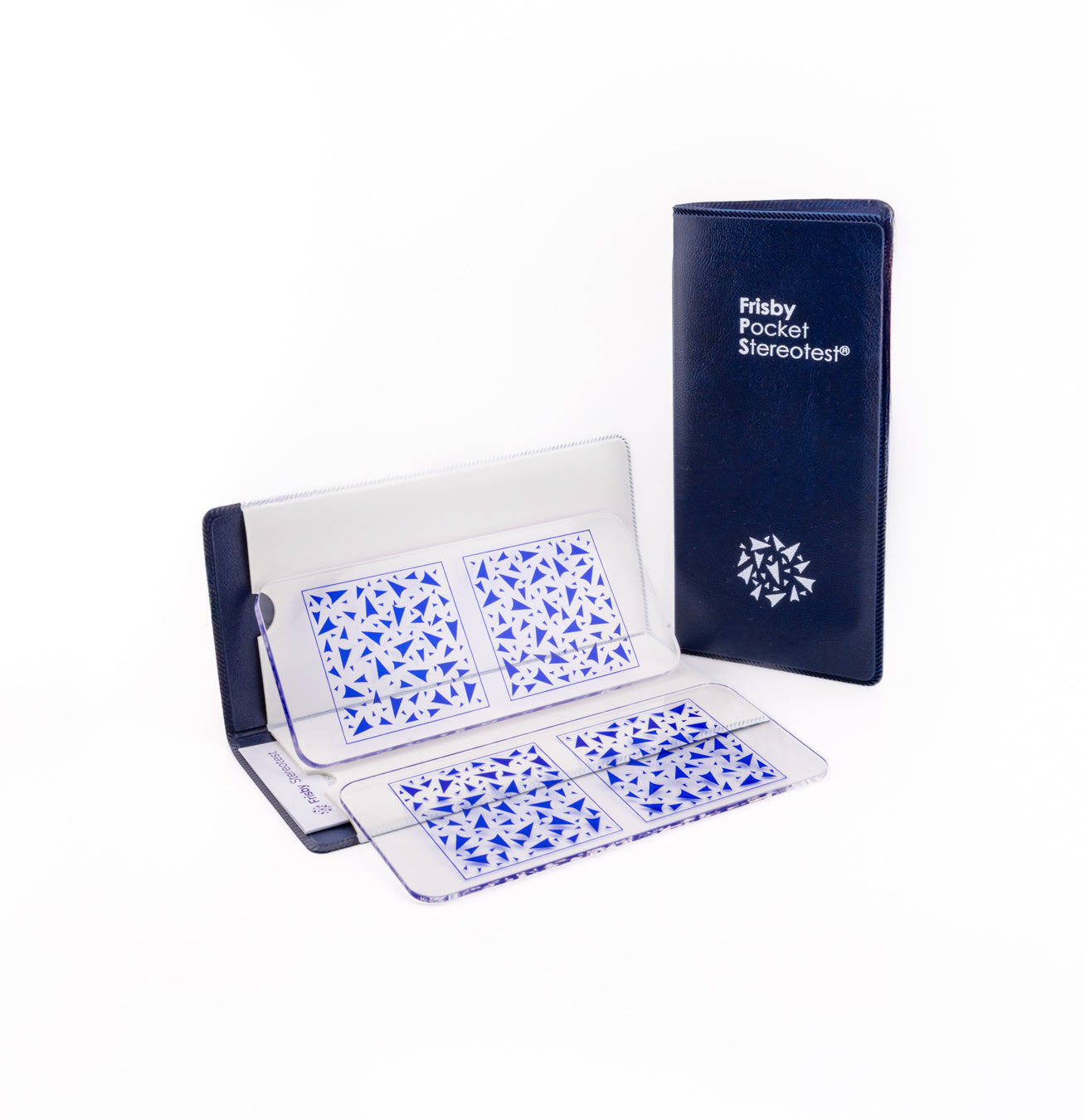 The Frisby Stereotest is a free-space, real depth stereotest. The plates have two random texture patterns, with a hidden circular shape in one. The patient has to decide in which pattern the hidden shape lies.